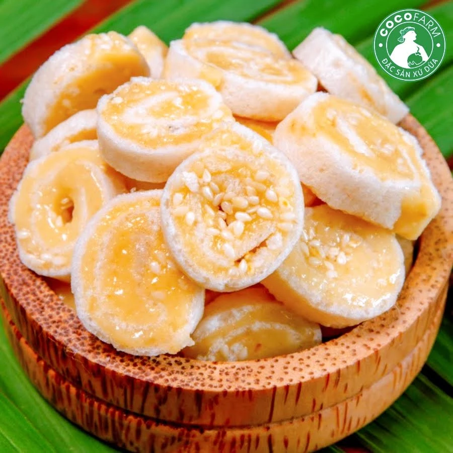 Kẹo Dừa Dứa cuộn bánh tráng Cocofarm được làm từ 1 loại dừa vô cùng đặt biệt của Bến Tre đó là cây Dừa Dứa. Dừa Dừa khác biệt so với dừa bình thường ở hương vị cơm dừa có mùi thơm của dứa, mùa nắng thì Dừa Dứa thơm hơn, nước cũng ngọt hơn. [...]