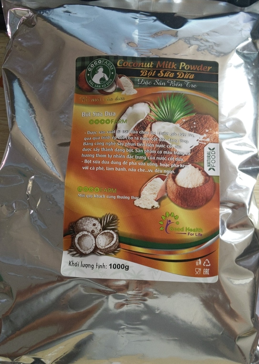 Bột sữa dừa Cocofarm được sản xuất từ trái dừa chọn lọc chính gốc Bến Tre. Qua quá trình ép cốt cho ra nước cốt dừa dạng lỏng. Bằng công nghệ sấy phun tiên tiến. Nước cốt dừa được sấy thành dạng bột. Sản phẩm hoàn thành có hương thơm tự nhiên đặc trưng của nước cốt dừa tươi dùng để pha sữa uống hoặc pha kèm với coffe, làm bành hoặc nấu ăn đều được.