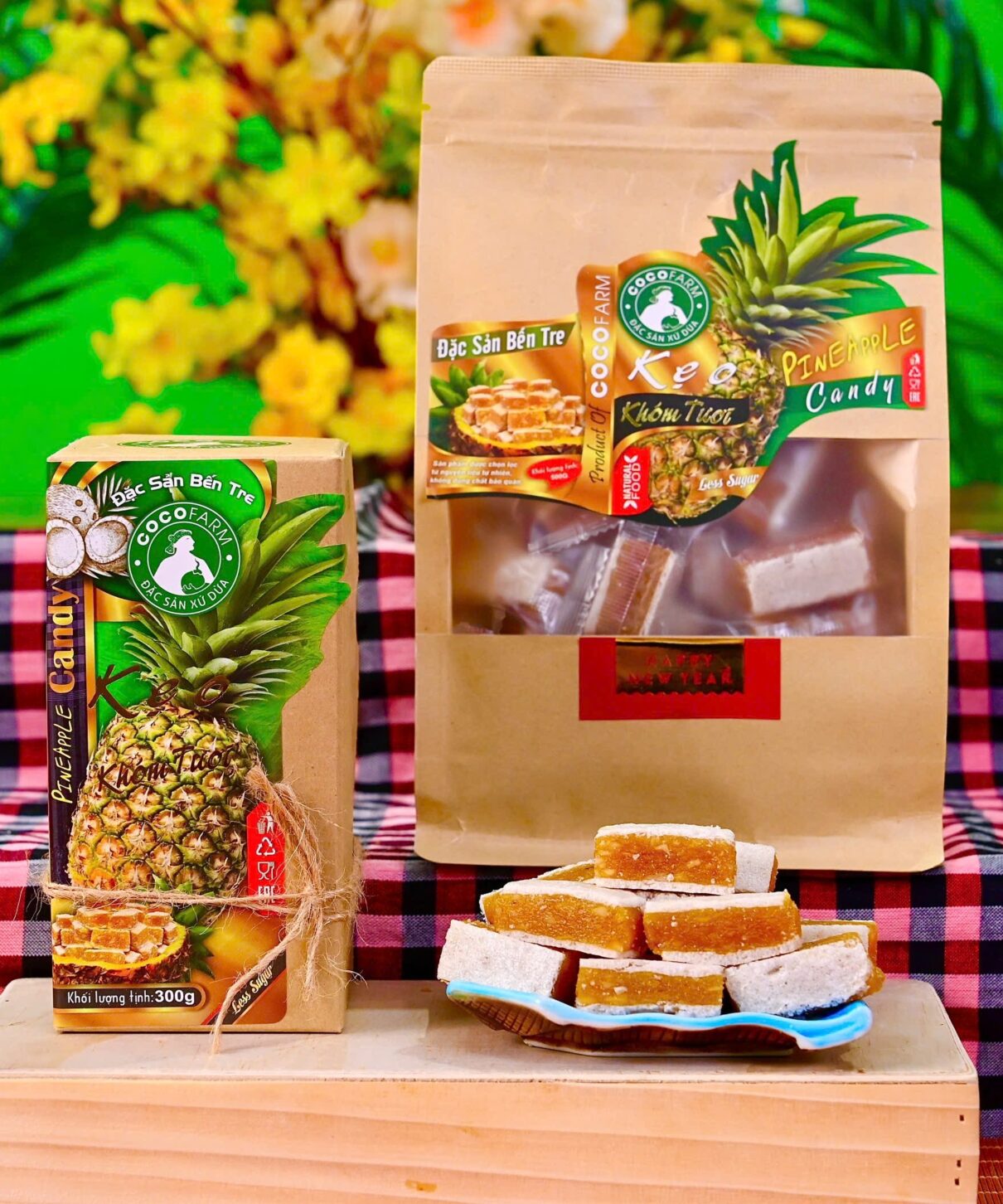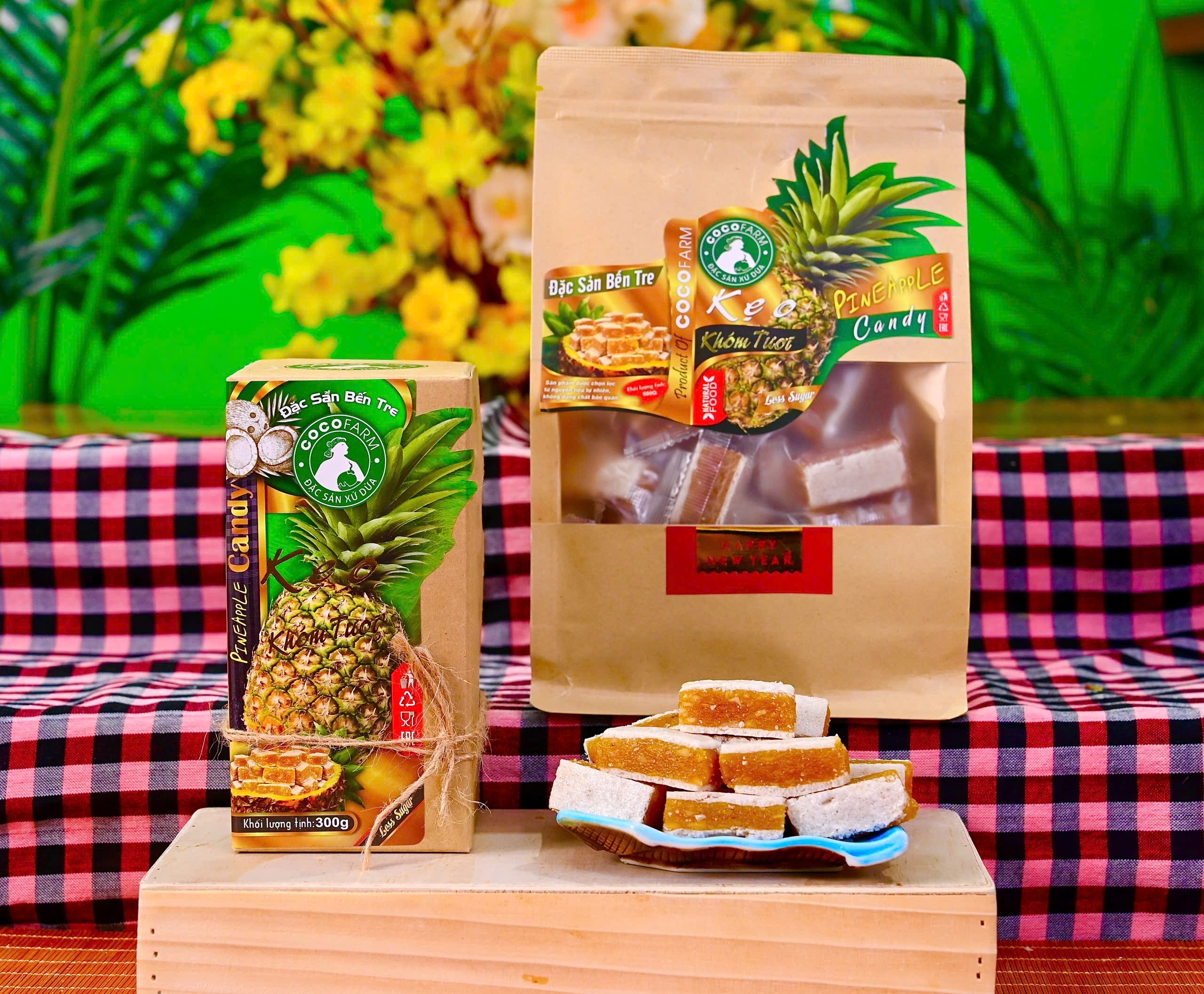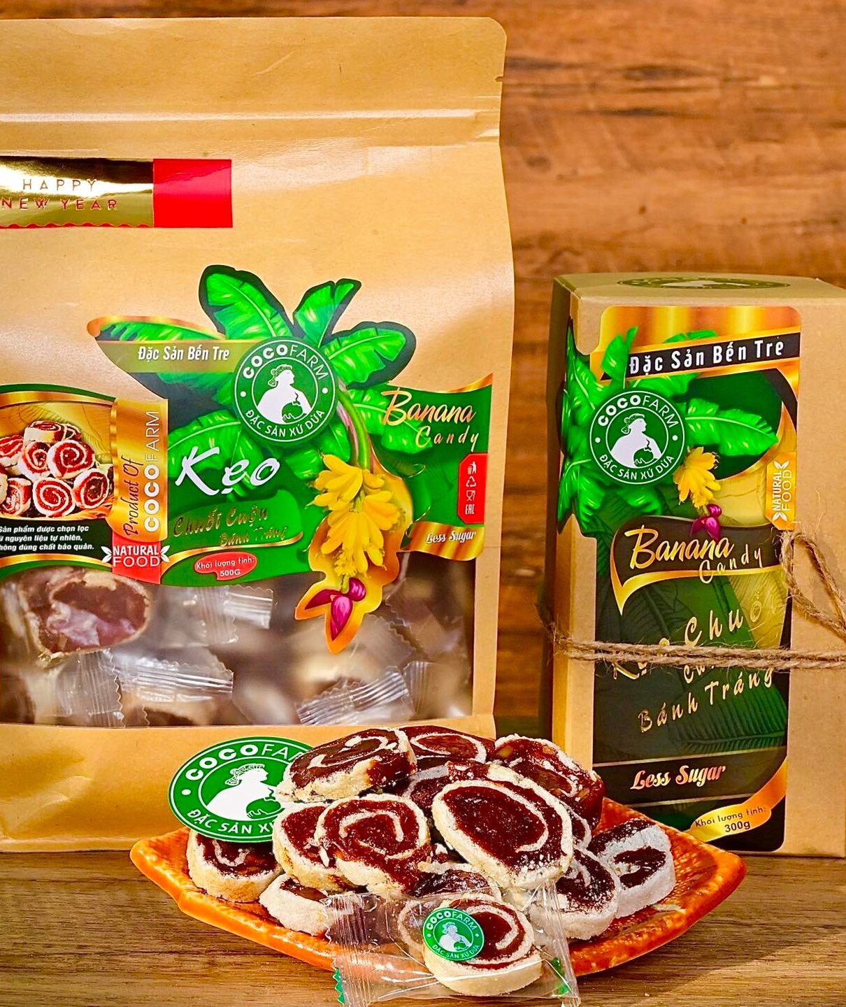 Kẹo dừa cuộn bánh tráng của Cocofarm là kẹo dừa ít ngọt, mềm mịn, thơm béo mà không dính răng vì sử dụng ít mạch nha và đường trong quá trình nấu kẹo, có 10 loại Kẹo Dừa khác nhau cho bạn lựa chọn, mỗi loại lại có một hương vị riêng ăn là ghiền!