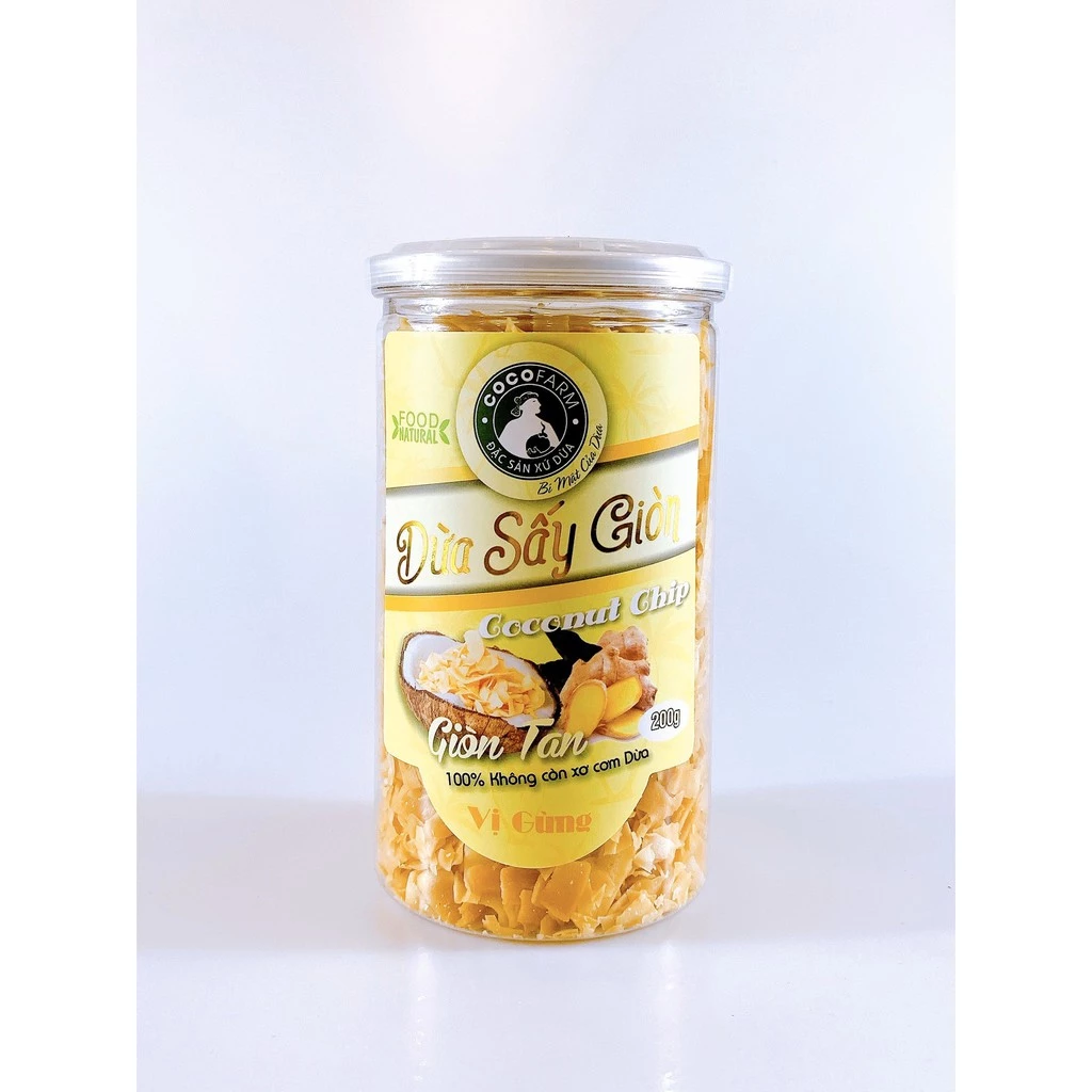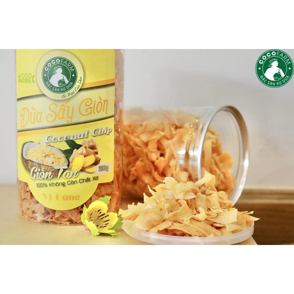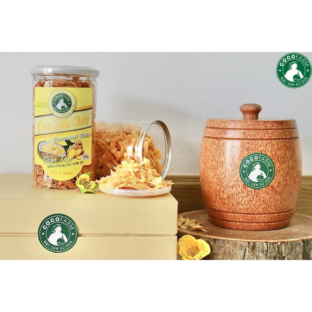 Dừa sấy giòn Cocofarm 100% không còn bã xơ. Dừa được sấy phải là dừa to tròn, rám vàng, dày cơm. Dừa được sấy bằng công nghệ hiện đại giúp giữ được chất lượng tuyệt hảo và hương vị đậm đà.