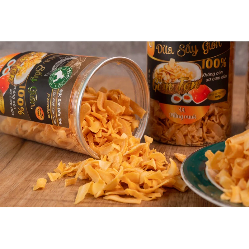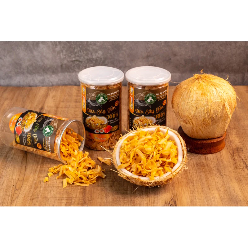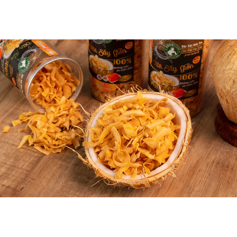🌿Dừa sấy giòn rụm, thơm béo tan trong miệng hầu như không còn xót lại dù chỉ là một chút bả sơ dừa, kèm vị cay the nhè nhẹ của Ớt, mùi thơm nồng của tỏi, vị ấm của gừng và vị thơm lừng của sữa tất cả hoà quyện tạo nên một loại đặc sản gây nghiện bật nhất của Quê Hương Xứ Dừa.