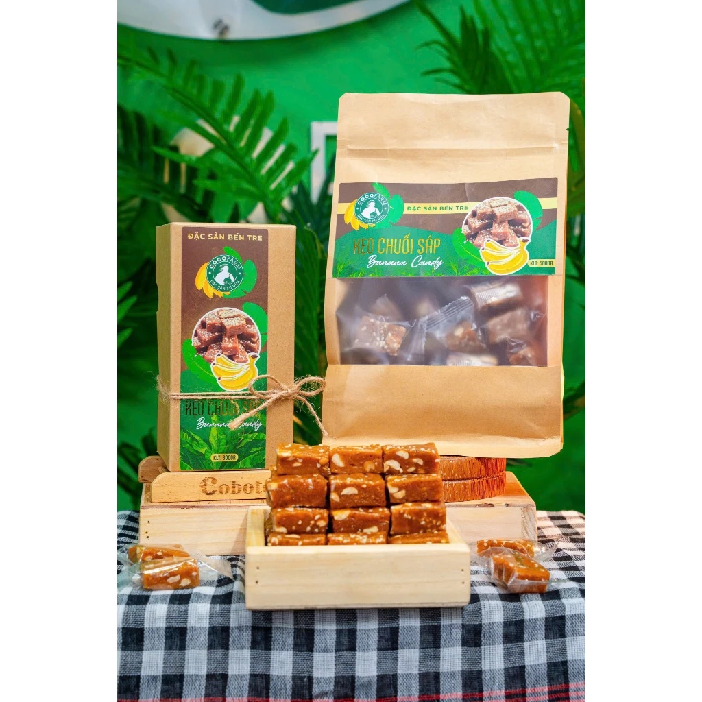 Được làm từ Chuối Sáp Nghệ là một trong những giống chuối đặc biệt, phổ biến ở miền Tây Nam Bộ, đặc biệt là Bến Tre. Chuối Sáp nổi bật với lớp vỏ vàng óng như nghệ, ruột khi luộc lên có màu vàng cam, khi ăn chuối có độ bùi nhẹ, dẻo quánh, thơm lừng và đặc biệt có vị ngọt rất nhẹ.