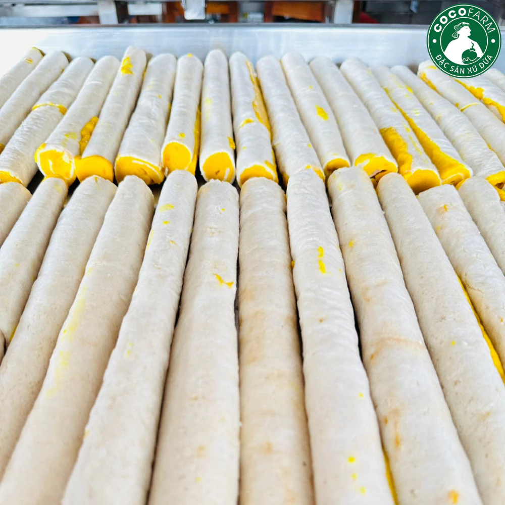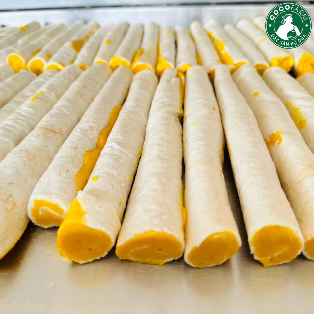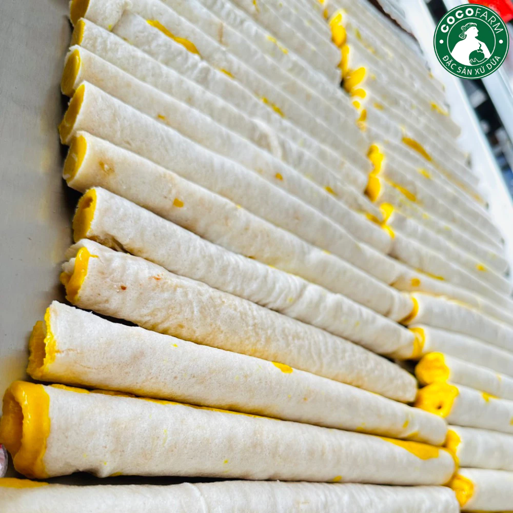 Kẹo Dừa Dứa cuộn bánh tráng Cocofarm được làm từ 1 loại dừa vô cùng đặt biệt của Bến Tre đó là cây Dừa Dứa. Dừa Dừa khác biệt so với dừa bình thường ở hương vị cơm dừa có mùi thơm của dứa, mùa nắng thì Dừa Dứa thơm hơn, nước cũng ngọt hơn. Nước Dừa Dứa thì ngọt và mát. Nếu bạn đã ăn kẹo dừa truyền thống thì Kẹo Dừa Dứa còn ngon hơn gấp nhiều lần, đặt biệt hơn nhiều lần như thế.