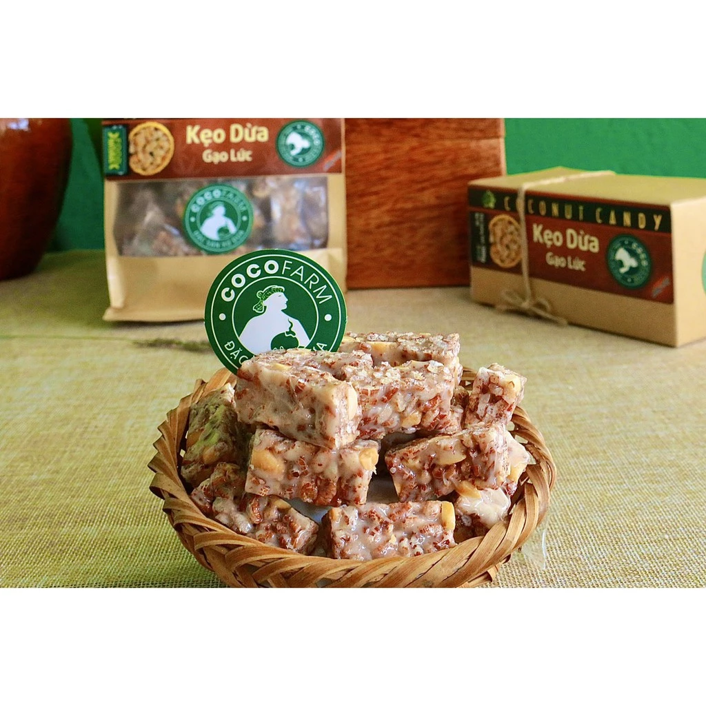 Kẹo dừa gạo lứt đậu phộng Cocofarm được sản xuất theo quy trình khép kín đảm bảo chất lượng và vệ sinh an toàn thực phẩm tuyệt đối. Mang đến hương vị thơm ngon của kẹo dừa được mix cùng gạo lức có lợi cho sức khỏe. Đây là một trong những món đặc sản mà bạn không nên bỏ qua khi tới xứ dừa Bến Tre của chúng tôi.