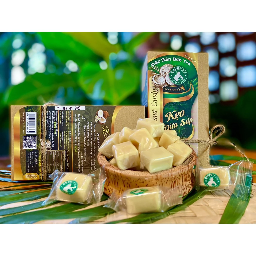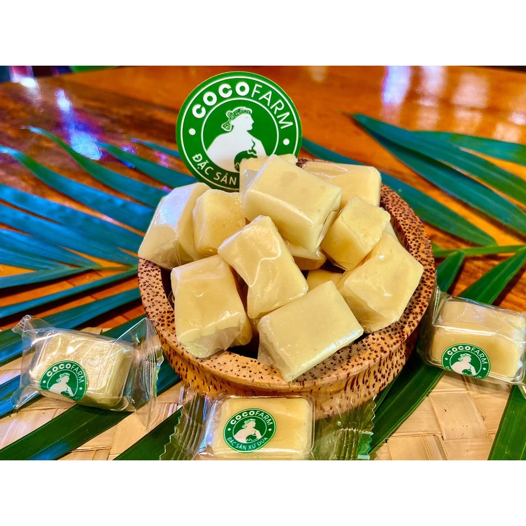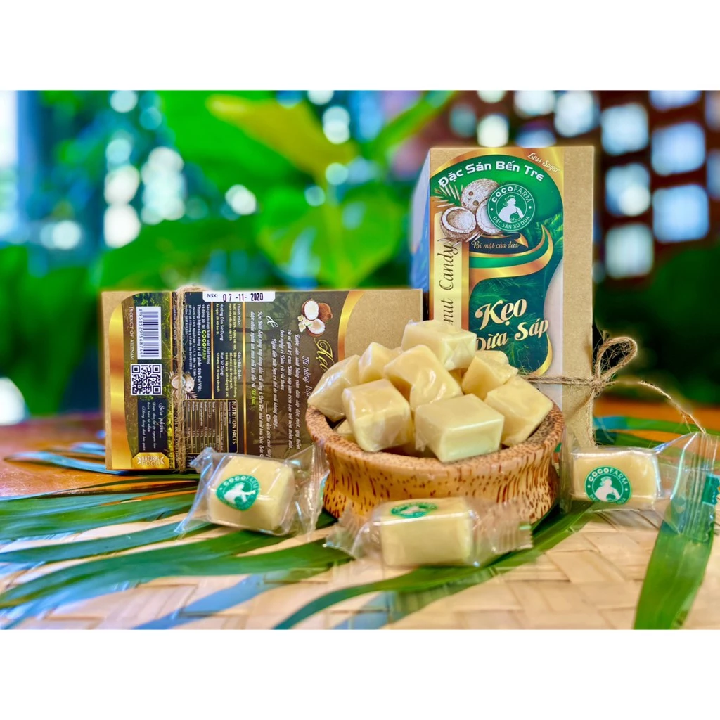 Kẹo dừa sáp Cocofarm được sản xuất từ một loại dừa sáp vô cùng quý hiếm chỉ được trồng ở Trà Vinh. Dừa sáp giúp cho viên kẹo trở nên mềm mịn, thơm béo với vị ngọt vừa phải tan nhanh trong miệng mà không bị ngán. Nếu bạn đã từng ăn kẹo dừa truyền thống và trầm trồ vì hương vị của nó thì kẹo dừa sáp còn ngon hơn gấp nhiều lần như vậy. Kẹo dừa sáp ngày nay đang dần nổi tiếng ở Bến Tre như một loại đặc sản quý được nhiều người tìm mua mỗi khi đến với xứ dừa.