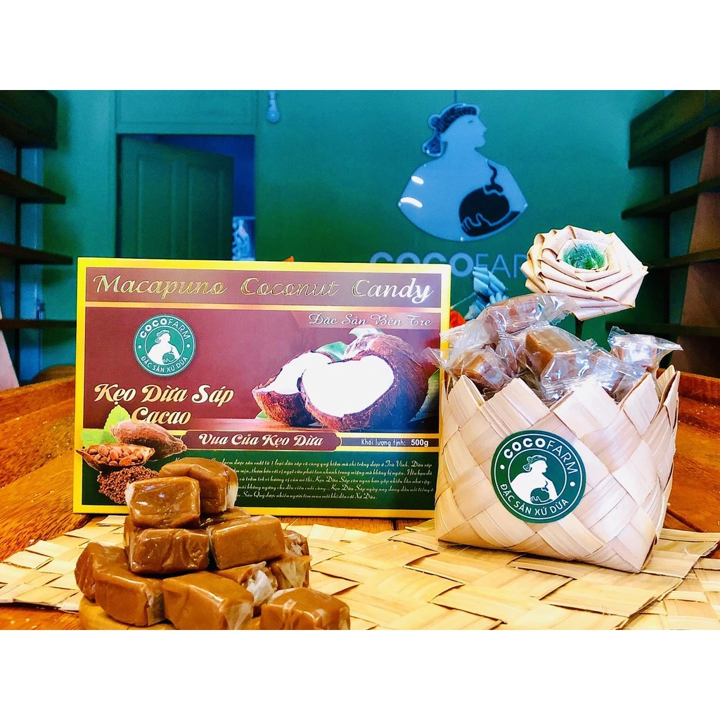 Kẹo dừa sáp Cocofarm được sản xuất từ một loại dừa sáp vô cùng quý hiếm chỉ được trồng ở Trà Vinh. Dừa sáp giúp cho viên kẹo trở nên mềm mịn, thơm béo với vị ngọt vừa phải tan nhanh trong miệng mà không bị ngán. Nếu bạn đã từng ăn kẹo dừa truyền thống và trầm trồ vì hương vị của nó thì kẹo dừa sáp còn ngon hơn gấp nhiều lần như vậy. Kẹo dừa sáp ngày nay đang dần nổi tiếng ở Bến Tre như một loại đặc sản quý được nhiều người tìm mua mỗi khi đến với xứ dừa.
