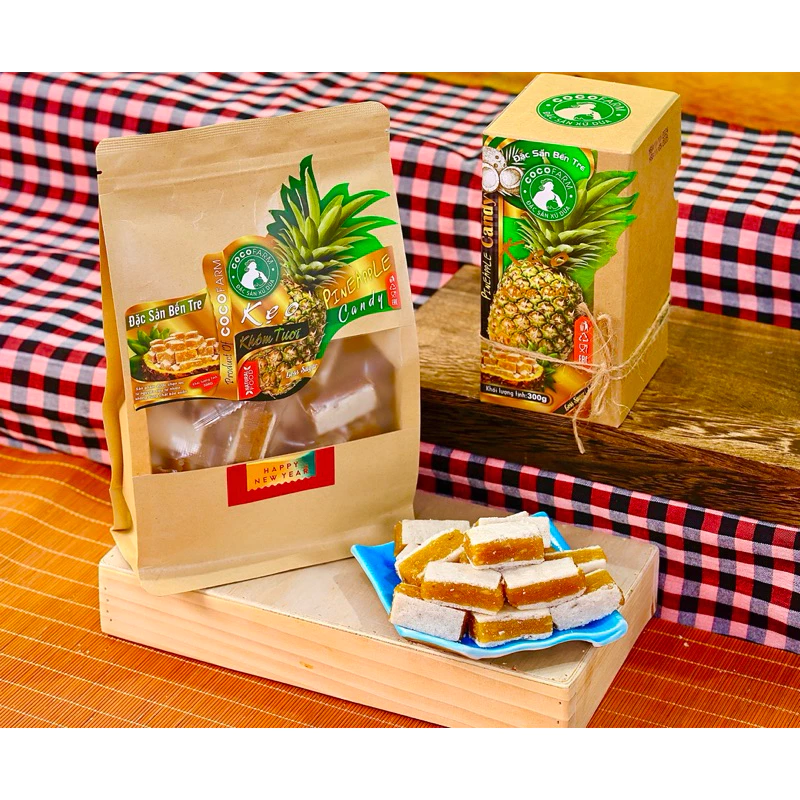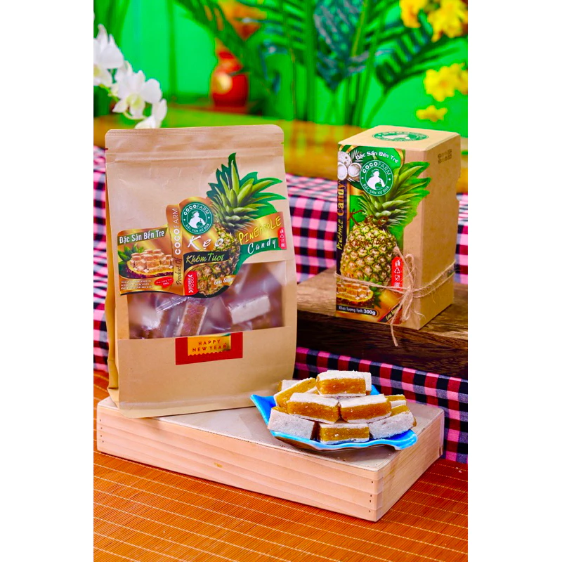Sản phẩm Kẹo khóm ( Dứa ) tươi với nguyên liệu từ quả dứa chín mọng nhiều nước và dùng ít đường trong quá trình sản xuất, viên kẹo vàng tươi, mềm dẻo và thơm lừng vị dứa tươi tự nhiên nhiều vitamin tốt cho mọi người đặc biệt là các bé và ông bà. Kẹo khóm ( Dứa ) tươi là sản phẩm mới lần đầu tiên có mặt tại việt Nam chỉ có tại Cocofarm sẽ khiến bạn phải bất ngờ vì nó quá ngon. Ngon đến nỗi đây là loại kẹo bạn có thể ăn hết hộp lúc nào không hay.